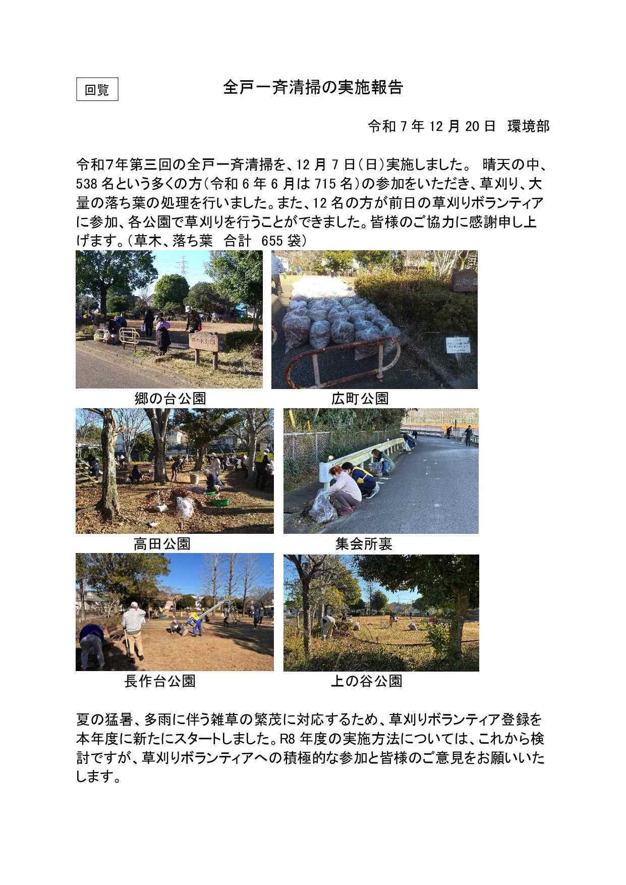 12/7 全戸一斉清掃 実施報告 環境部より
